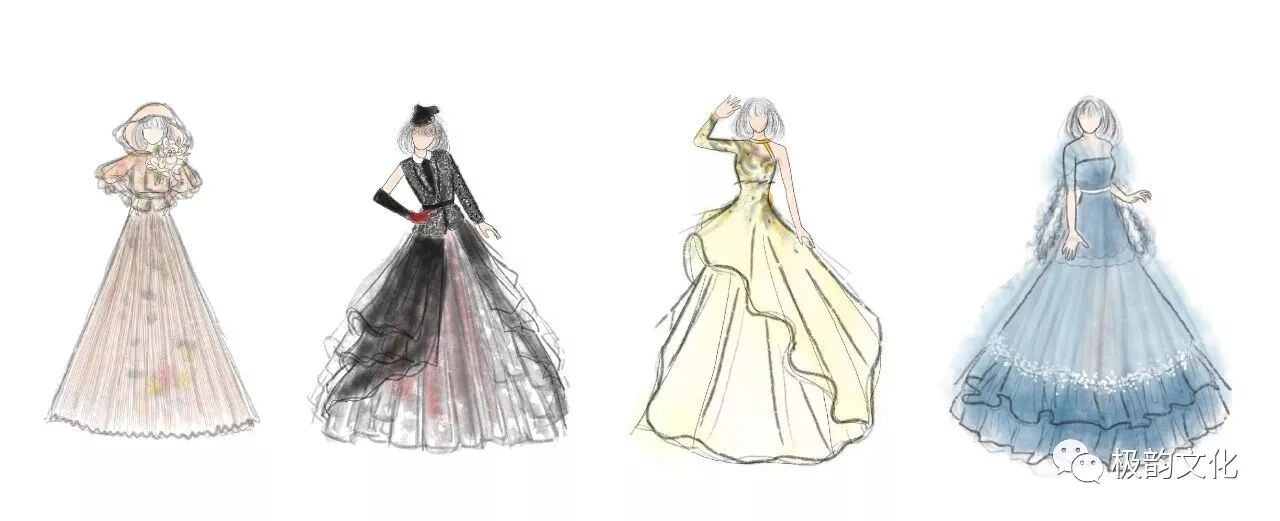 布鲁斯老师设计四套代表不同意境的服装手稿