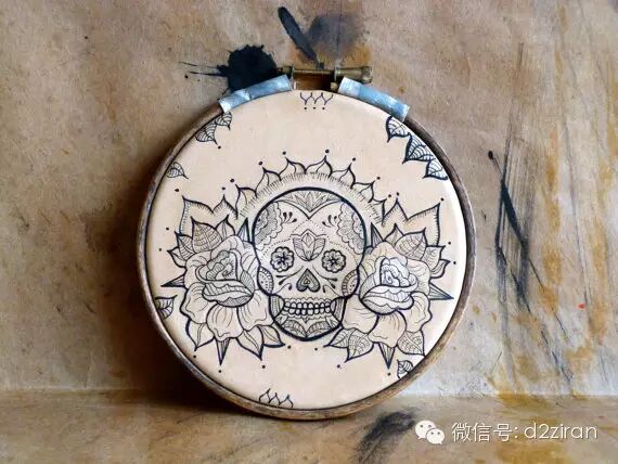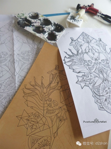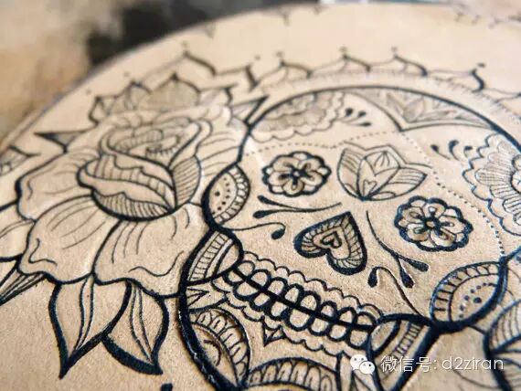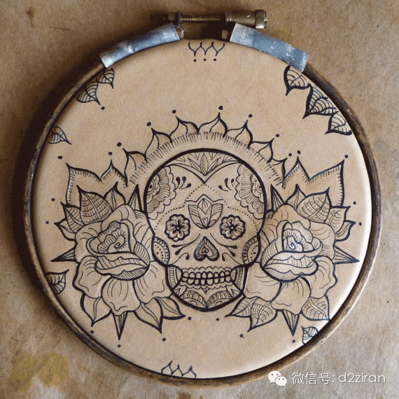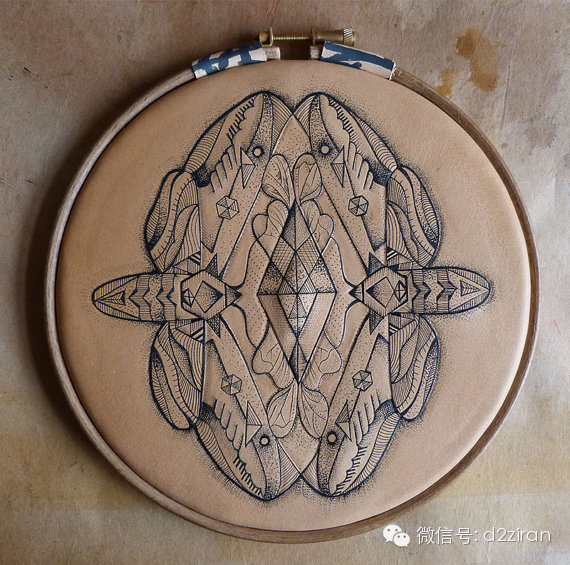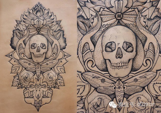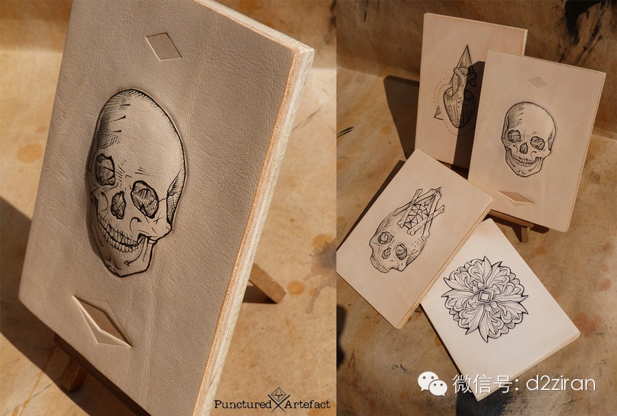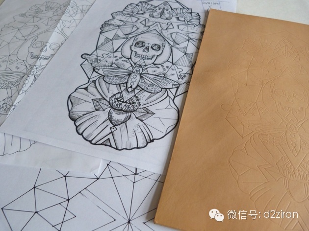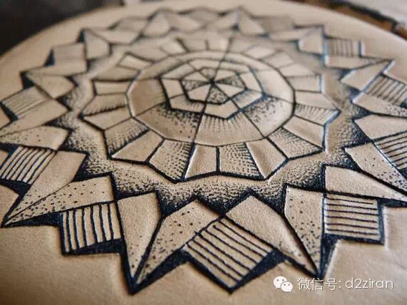 为了衬托出皮革的设计和美感,表面的图案使用纹身枪和针纹予表面,压纹、雕刻、凸纹以及蚀刻等处理技术使得每个图案出现了3D的效果。