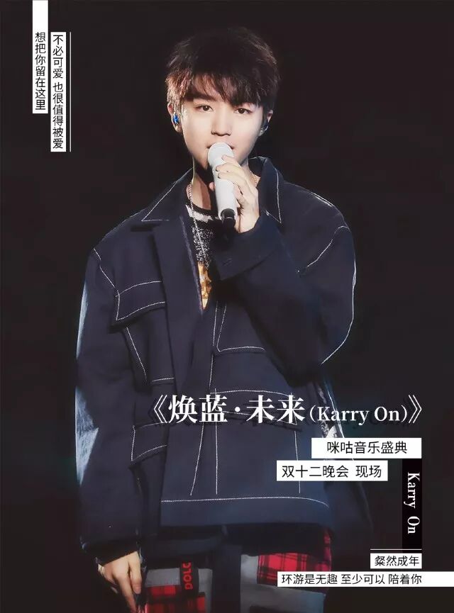 双十二晚会和咪咕音乐盛典上你都唱了《焕蓝·未来》,一首对你意义重大的歌。舞台上,你是真正的王者,整个舞台都是你的主场。我坐在寝室刷着前线传来的repo,心想,多不容易啊,跨过了人山人海,只为能看上一眼,又想,多么幸福啊,能亲眼看见你心底的山河和眼底的真意。
