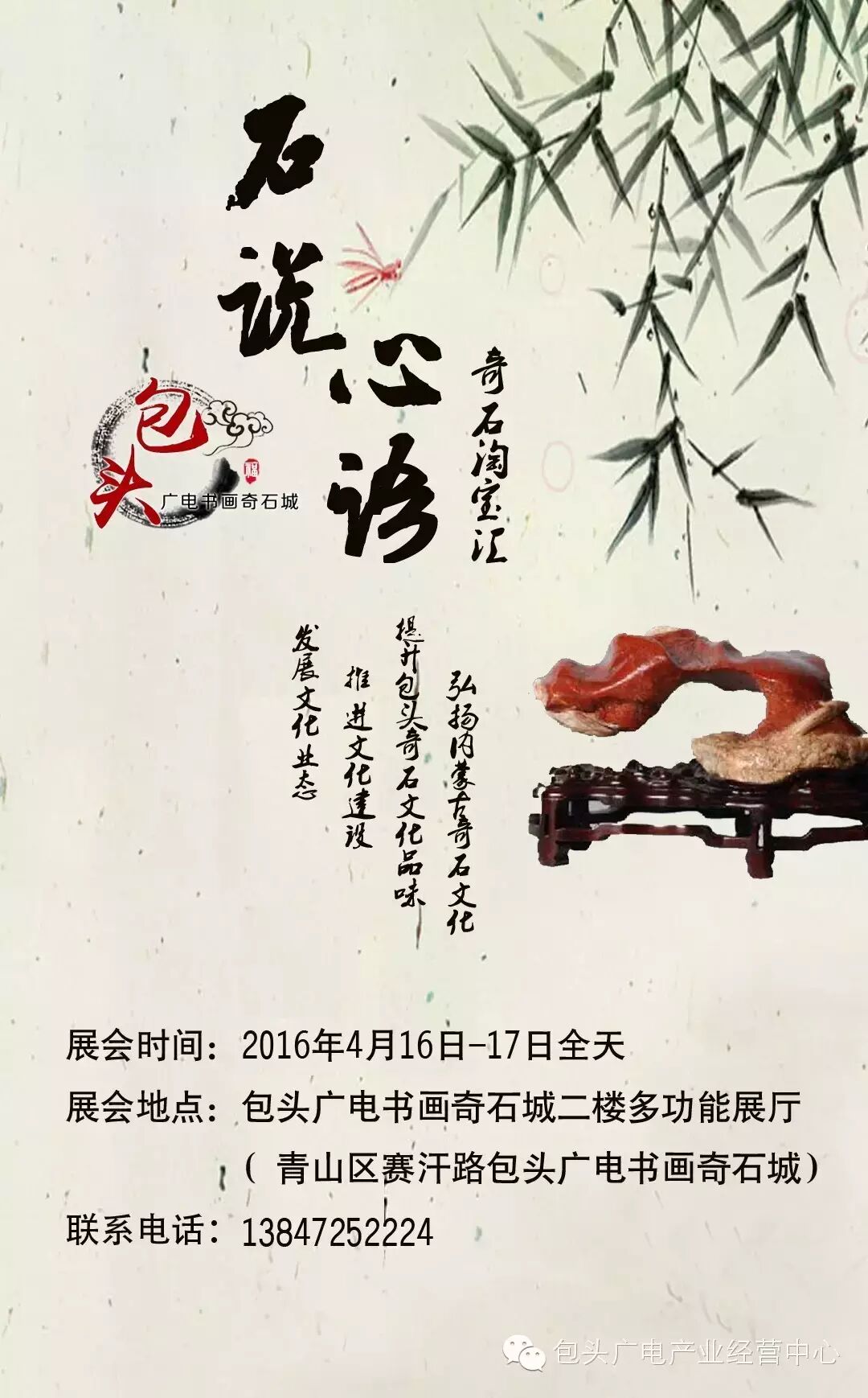 本次展出由包头广电书画奇石城商家及部分周边商家提供展品,本次展出的奇石种类繁多,奇石爱好者一方面可以了解更多奇石文化,另一方面可以以最低的价格购买到大家喜欢的奇石。