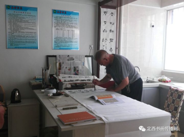 图为吴育智先生正在创作中