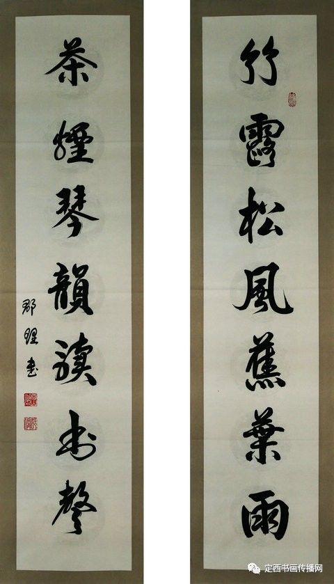 对联《竹露松风蕉叶雨,茶烟琴韵读书声》34cmX136cmX2