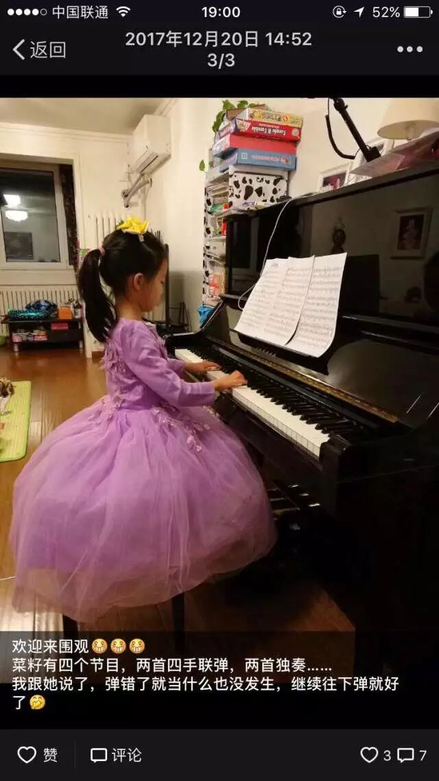 在圣诞音乐会的当天,她在台上弹钢琴一点都不怯场,并且在出发之前,主动向我表示穿着小公主裙,真的是被她这份认真感动到了