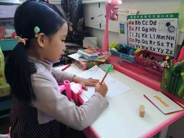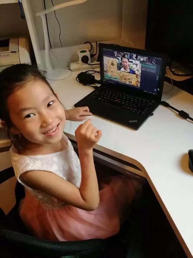 她每次上课都会早早的等着老师,特别的喜欢这种和老师在线上互动的方式,每天都想着上课。