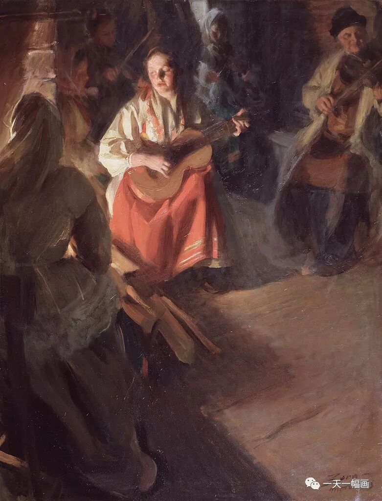 今天我们欣赏瑞典画家安德斯·佐恩为我们带来的一幅《音乐之家》,看这题名你会不会想到电影“音乐之声”,想到上校和玛利亚演唱的《雪绒花》引起所有人的共鸣,神奇的音乐不仅能够温柔驯良调皮捣蛋的孩子,,,从而诠释音乐能给人以信心和智慧。