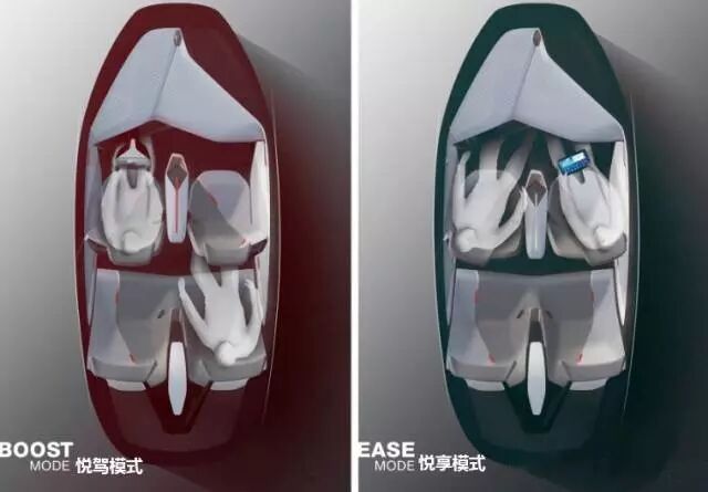 这款概念车有两个模式,一种叫悦享模式,就是让车自动驾驶自己跑自己的,而车的内饰则会变成适合交谈和娱乐的形式!