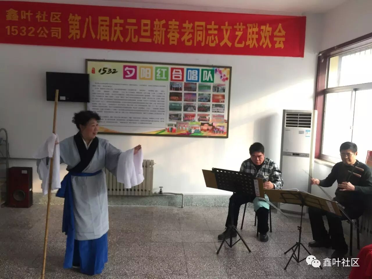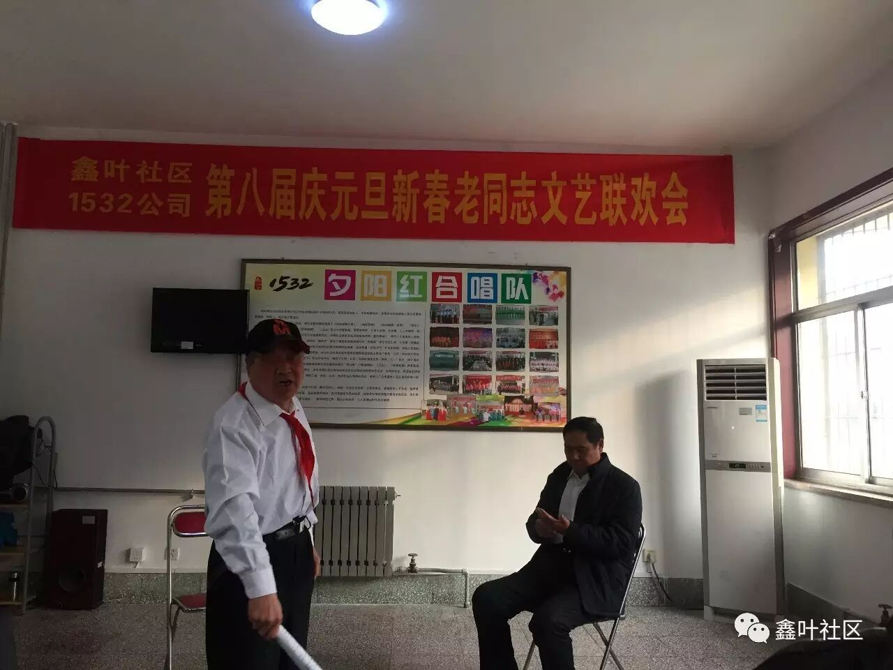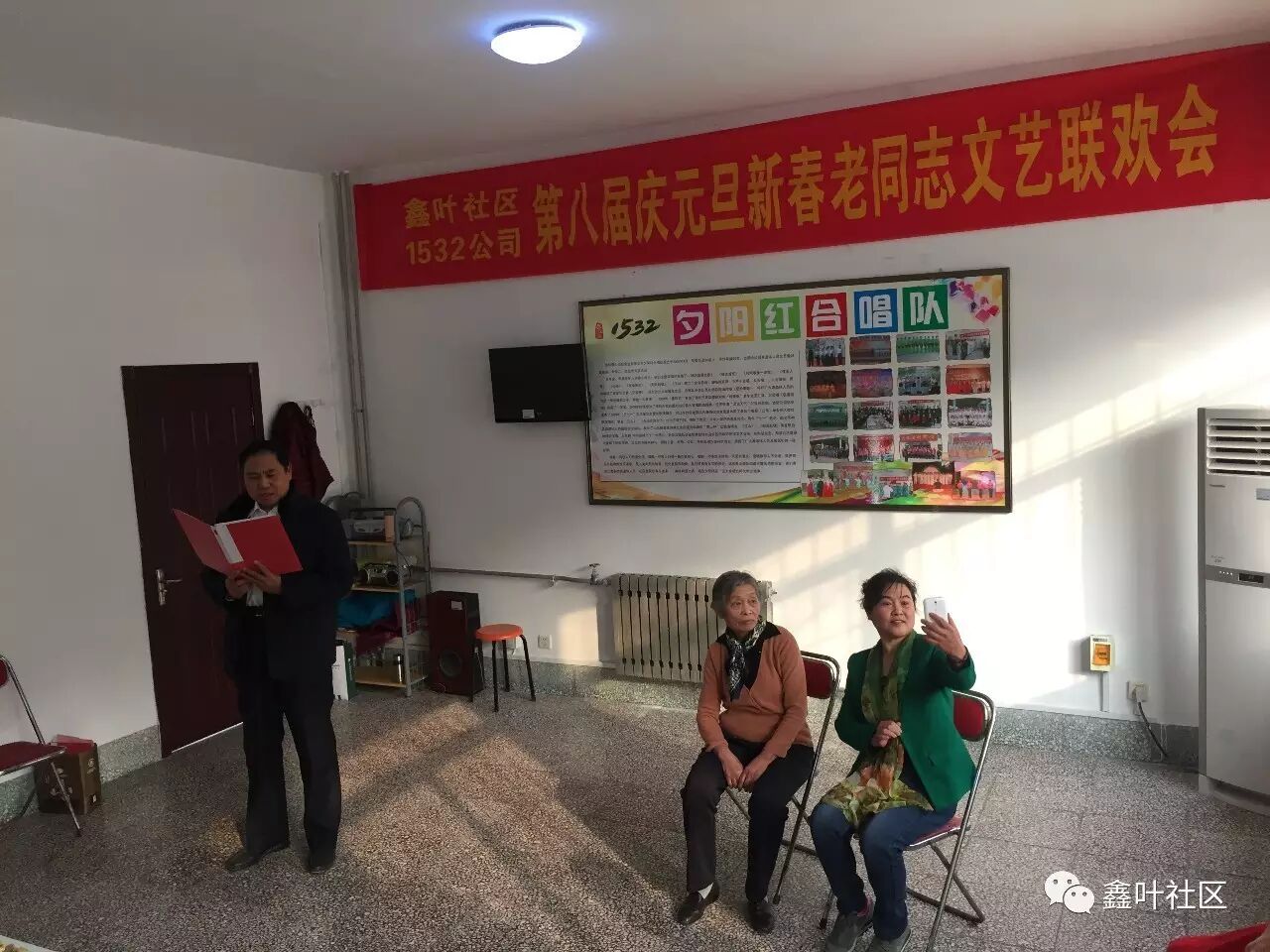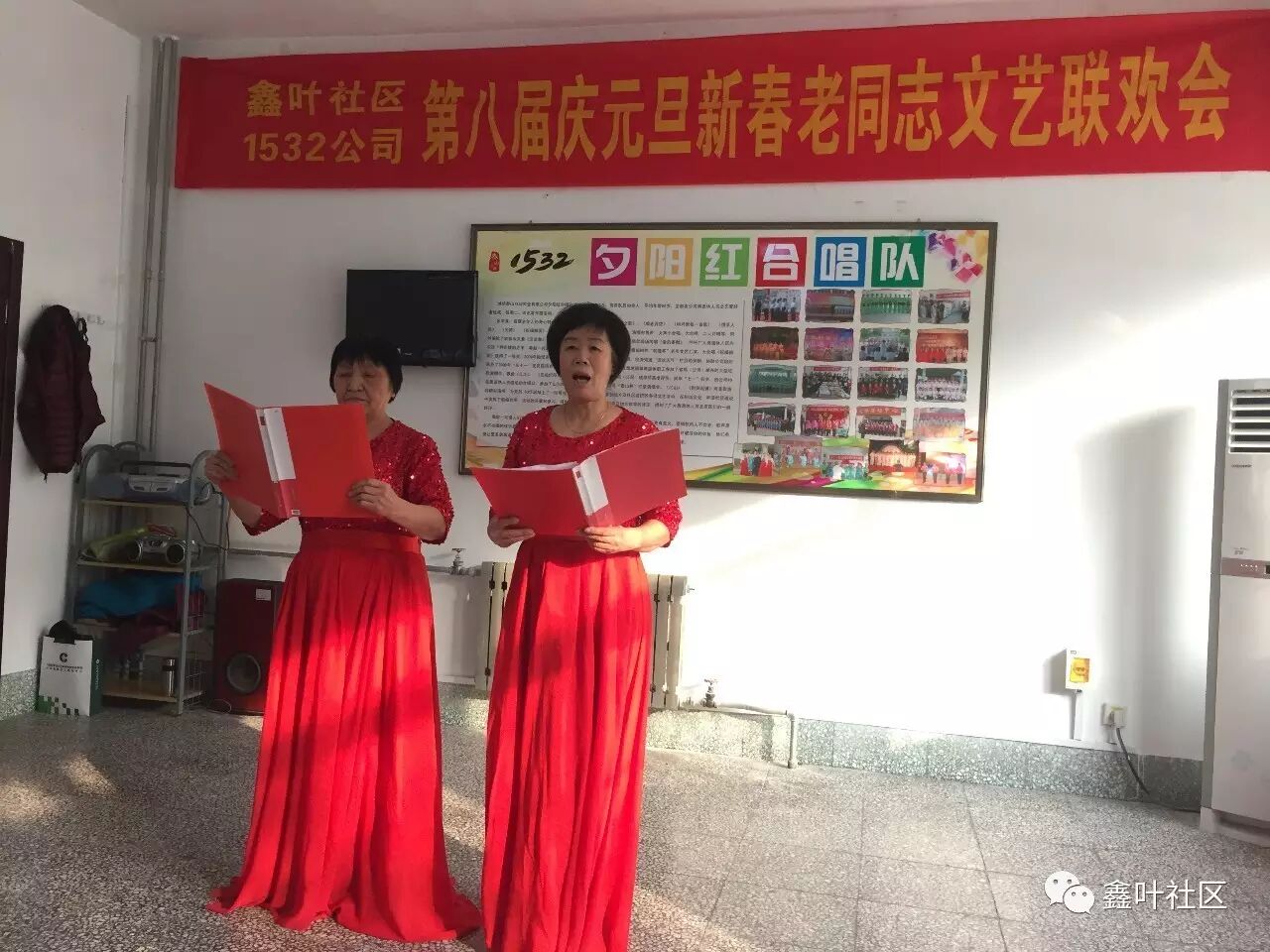 昨天下午两点时分,鑫叶社区"庆元旦迎新春”联欢会正式开始。本次联欢会由鑫叶社区和泰山1532公司联合举办,整台节目由社区居民自己创作并自导自演。节目在合唱队选送的女声小合唱:“夸夸咱们的鑫叶家园”歌曲声中拉开了序幕,作词:栾志松,作曲:仲济润,艺术指导:王建霞。