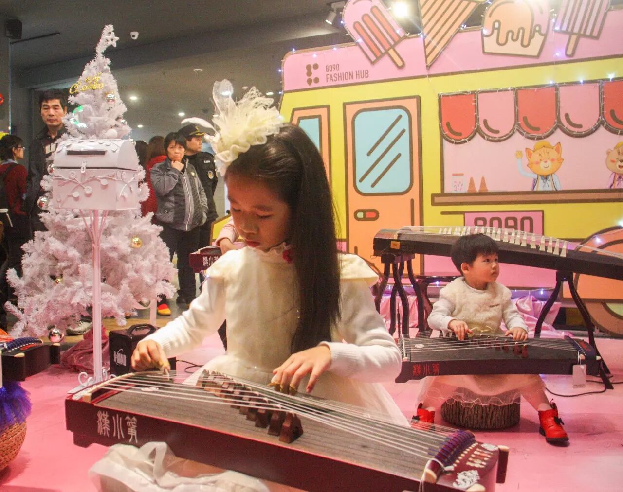 首先出场的古筝会馆的老师跟小朋友们,表演的一曲小苹果,赢得了现场观众的热烈掌声