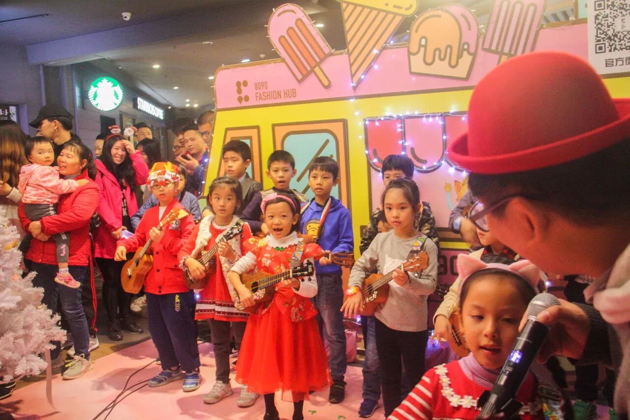 由小胖老师带领的小朋友们开始弹奏起了尤克里里