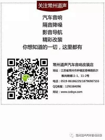 常州道声汽车音响改装旗舰店:专业汽车音响、导航、隔音等服务,总经理兼技术总监陈祥清先生是世界汽车音响竞赛组织(MECA)的国际裁判执裁员和国家汽车影音考评员,被授予行业金耳朵奖,汽车音响专家,测评专家等。常州道声是中国汽车音响改装50强、金匠奖音改十强店、欧洲EMMA白金会员店、汽车音响改装培训基地……
