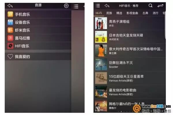 可以看到原车导航上输出的视频界面,乃歌航DSD云主机连接视频输出口而成的,车主打开手机APP,在hifi音乐平台挑选好自己喜欢的音乐后,用方控进行无线遥控,完美展现了视频输出与方控的配合。
