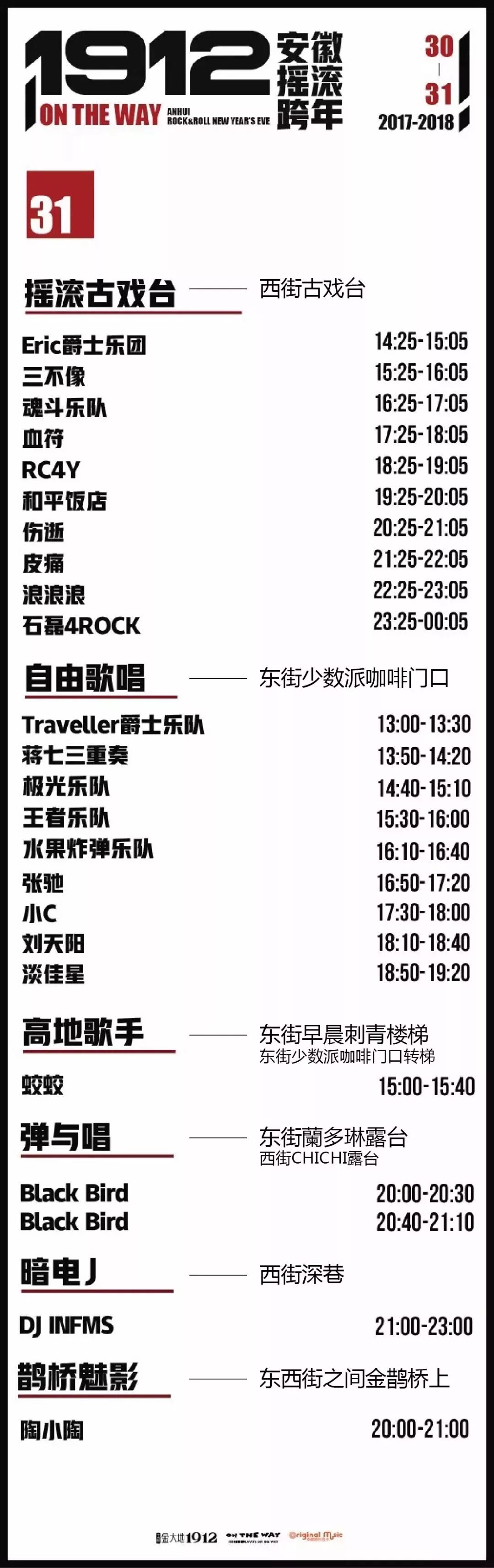 做为合肥小资集聚地的1912街区,跨年夜是不可能没有活动的;12月30日、12月31日连续两天——安徽原创音乐摇滚跨年音乐节