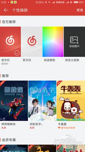 虾米音乐仅支持界面换肤功能,部分需会员使用。