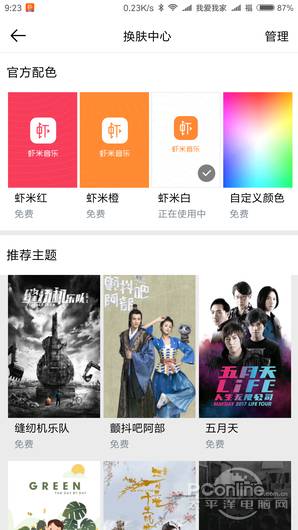 图9 虾米音乐播放界面 图10 换肤中心