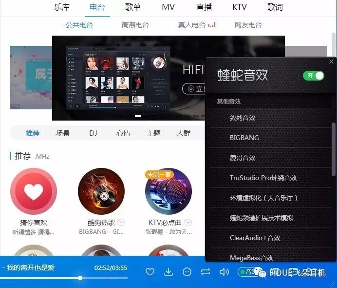 首先小娘君对五款软件确认有无音效,结果发现网易云音乐和虾米音乐都没有音效的选项。也许网易云音乐是段子和开车圣地,虾米音乐自认版权够多,所以他们不需要内置音效?停掉迷思,我们还是来对剩下来的QQ音乐、酷狗音乐和酷我音乐进行对比吧。