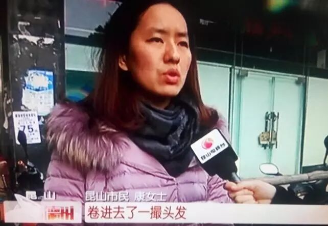 昆山康女士告诉记者,吹风机后面没有挡板,然后把她一整撮头发都卷进入了。说话的康女士,是苏州昆山人。日前,她在当地一家美发店吹头发时,自己的头发突然被吹风机后面的进风口给吸住了,然后她就感到头皮一阵酸疼。