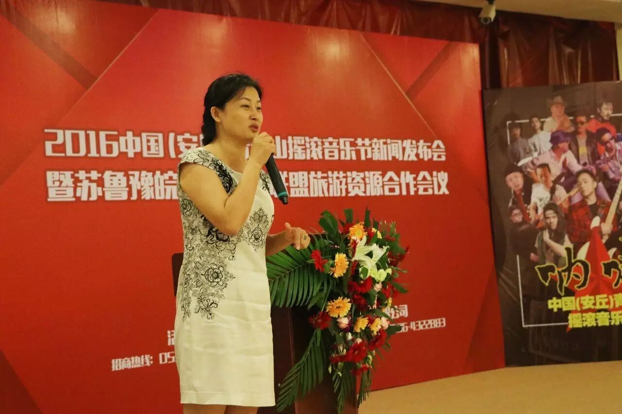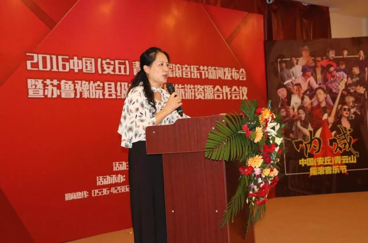 安丘广播电视影视中心副主任韩小闽现场致辞表示:安丘是一个旅游资源丰富的城市,感谢本次媒体联盟参与进来对安丘市的旅游资源进行推介,同时欢迎大家以摇滚音乐节为媒介,更好的资源整合,发挥媒体最大价值。