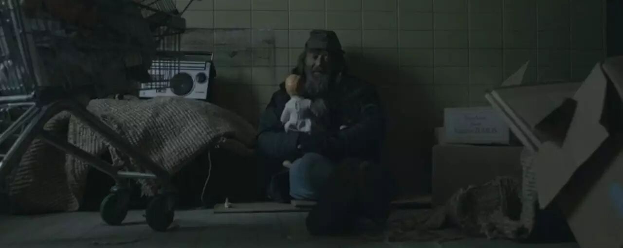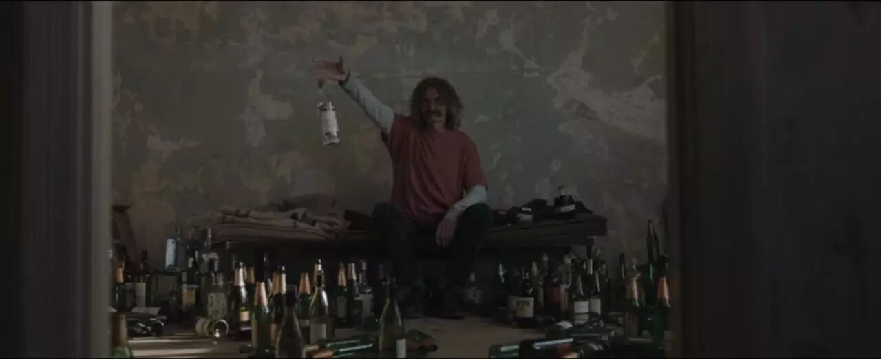 电影是1秒24帧的真理。让我印象深刻的一个地方是MV偏后的部分,有一个流浪汉坐在地铁道,然后镜头一闪,一个颓废的人周围围满酒瓶,手中酒瓶丢落,慢镜头。
