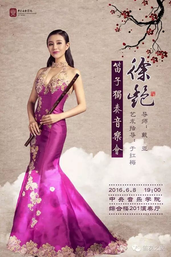 【笛友之家讯】:(记者 刘墨)徐艳笛子独奏音乐会将于2016年6月8日在中央音乐学院举行。届时,徐艳将为大家演奏《走进快活岭》、《鹧鸪飞》、《阿诗玛叙事诗》(精简版)、《梦之语》(首演)、《云》(一、二、三乐章)等曲目。