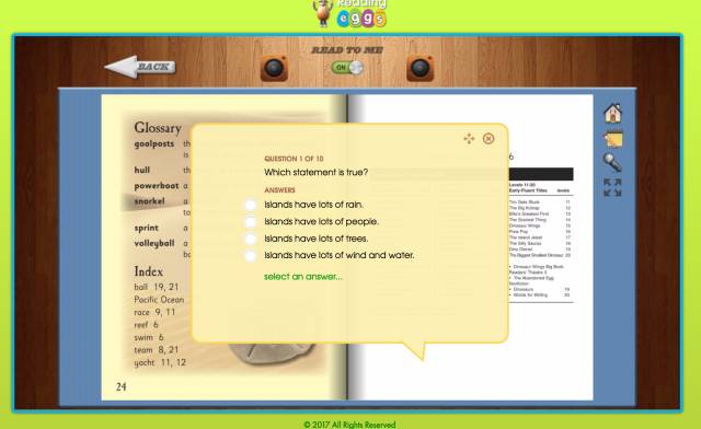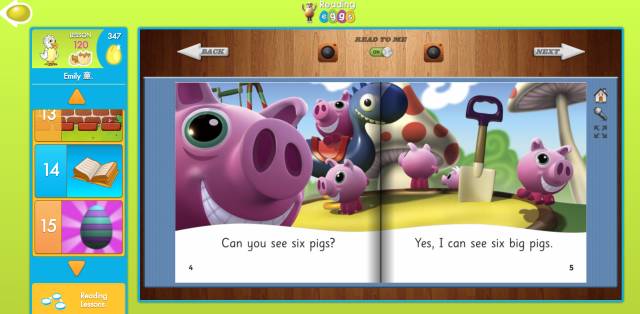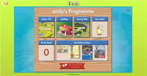 当孩子累积了一定的单词量,就可以打开Storyland故事乐园,这里有20个故事,140个练习,孩子可以通过好玩的故事情节,把学到的拼读方法运用起来。每一个故事都是一个独立课程,从理解故事中会出现的单词,到轻松阅读故事,用提问来理解,真正将故事阅读成为英语学习的好方法。