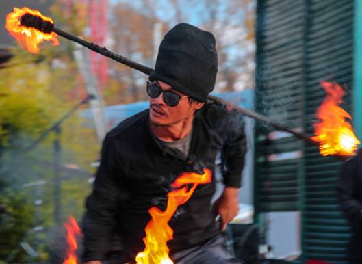 Channon热爱火,热爱与火共舞,非常高兴可以设计如何让火在身与心之间移动,很期盼能来到中国。这次Channon除火表演外,亦擅长5分钟肖像画,可教授绘画以及杂耍。其从事艺术工作超过18年,进行火表演超过7年。