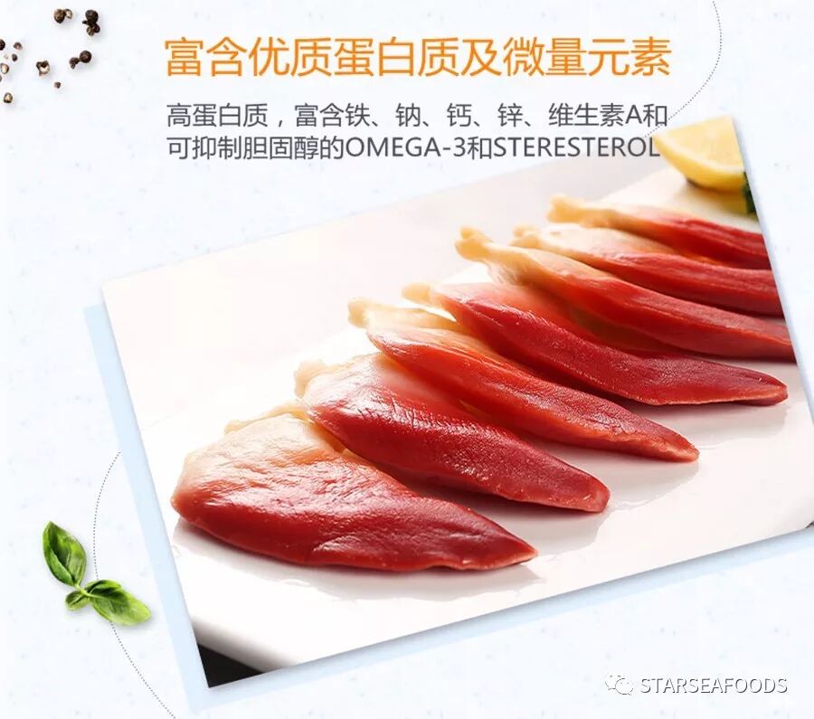 北极贝脂肪低,味道美,营养价值高,富含铁质,并含有可抑制胆固醇的OMEGA 3和STERESTEROL。