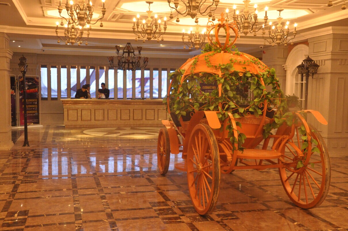 一下电梯,土豪啊土豪,满眼的金黄晃眼的赶脚!(据说这辆马车,还有一头骏马正在赶来的路上。那么问题来了,这匹马是什么颜色的呢?)