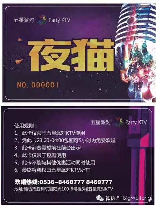 大福利:夜猫卡可在23:00--04:00包厢5小时内免费欢唱