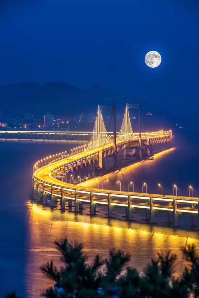 跨海桥如水的月光,是城市妩媚的晚妆。