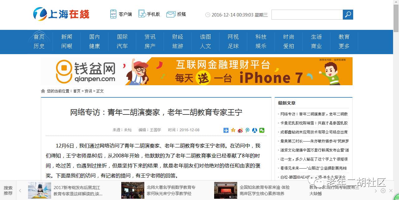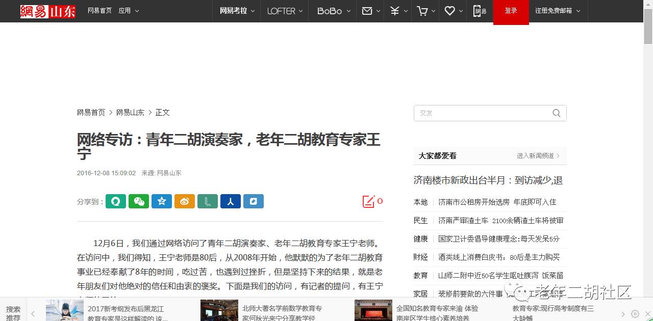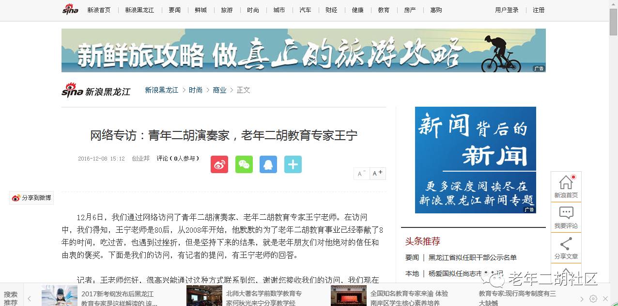 一篇采访老年二胡教师的文章,竟然被42家媒体转载,不的不说,这是一个正能量。说明国家对老年教育的重视,也是对老年二胡教育工作者的肯定。如果您也关注老年教育,请您帮忙转发,让更多的人来关注老年教育。