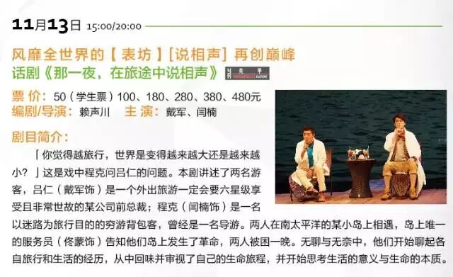 更换其他场次演出可参考秋冬演出季精品剧目☟
