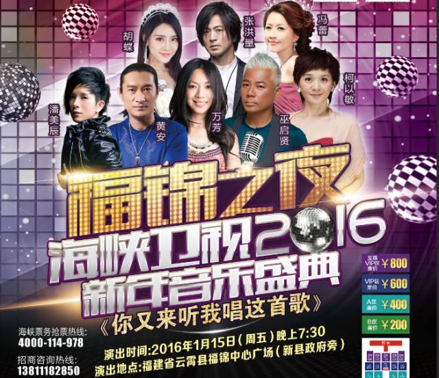 演唱会地点:云霄县福锦中心广场(新县政府旁) 万芳1993年以一首《新不了情》响彻华语乐坛,被尊为台湾“文艺范鼻祖”。2004年获得台湾金钟奖最佳女主角。万芳除了歌唱事业之外,也从事于舞台剧的演出,并主攻剧场、电视、电影以及戏剧等表演领域。 1987年发布单曲《悔》出道。9月推出个人首张专辑《不要走不要走》。12月获得台湾中时晚报年度新人奖。1989年凭借歌曲《我想有个家》获得金曲奖年度歌曲奖。1990年1月个人创作曲《我想有个家》 并获台湾第一届金曲奖,年度最佳歌曲奖。1992年1月自行组成音乐经纪公司乐之殿。2011年发布专辑《鹰与月》以女子音乐组合正式亮相。 2011年凭借歌曲《伤心神话》获得先锋乐队组合奖。