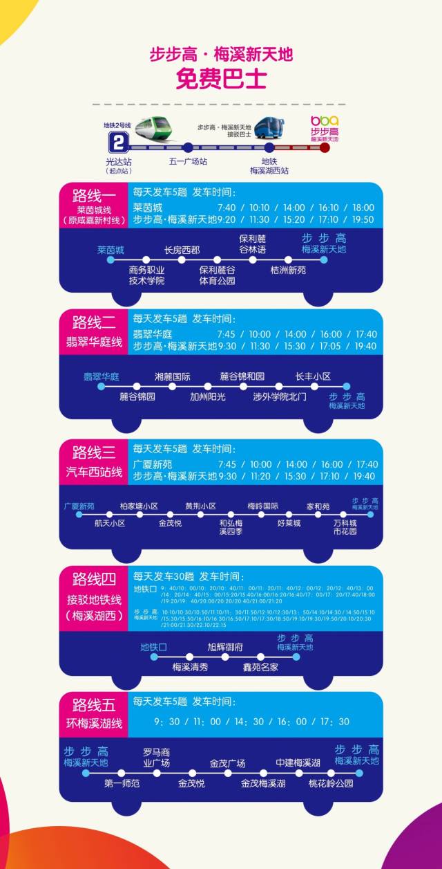地铁:乘坐长沙地铁2号线,至西沿线终点站“梅溪湖西站”下车,出站后即有梅溪新天地的免费接驳巴士为您服务,五分钟即达!