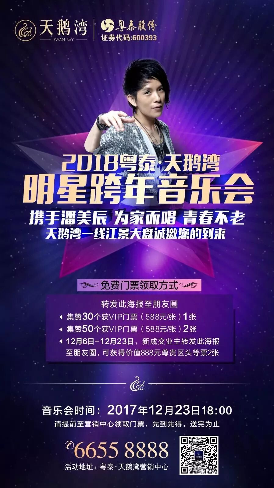 参与微信朋友圈游戏获赠天鹅湾明星跨年音乐会门票。
