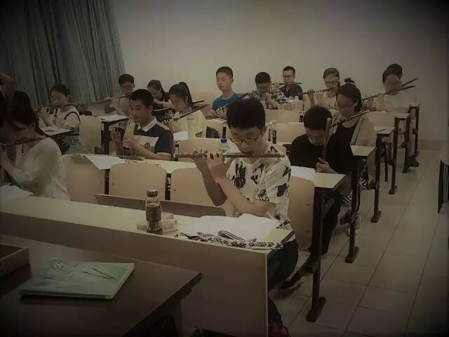 这里是笛箫协会开展的暑期第二课堂,在这间教室里坐着满满当当的学生。