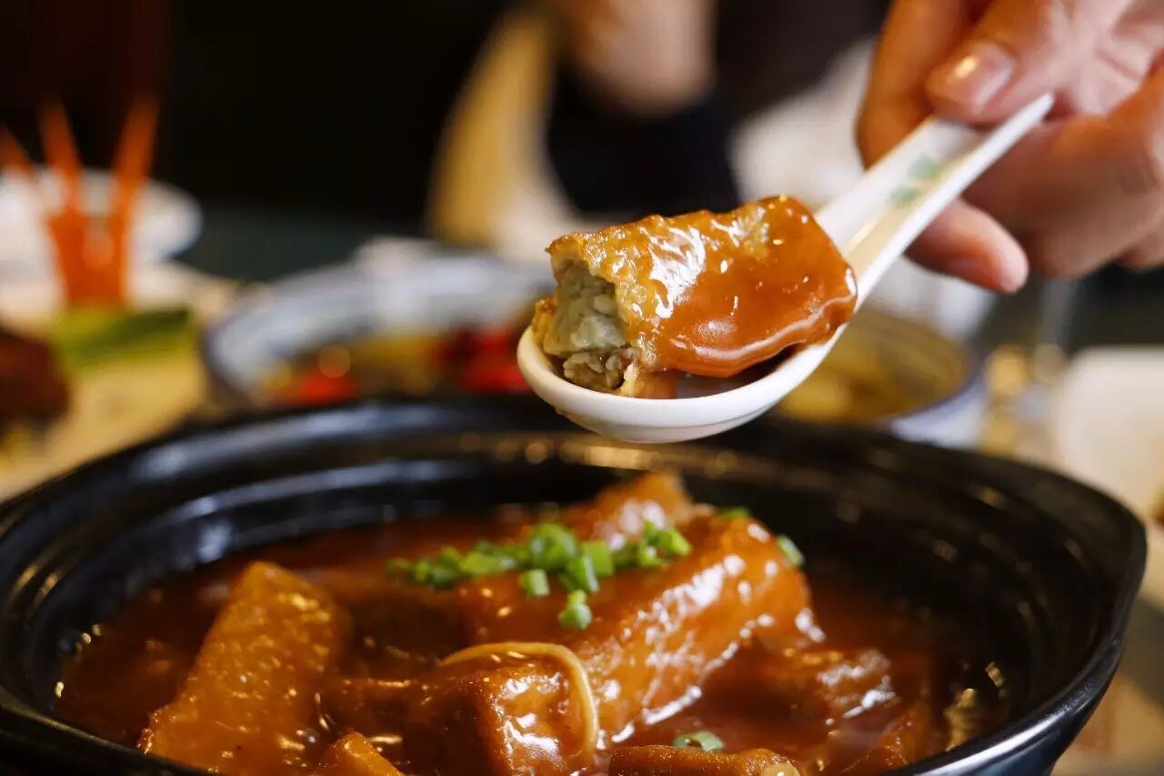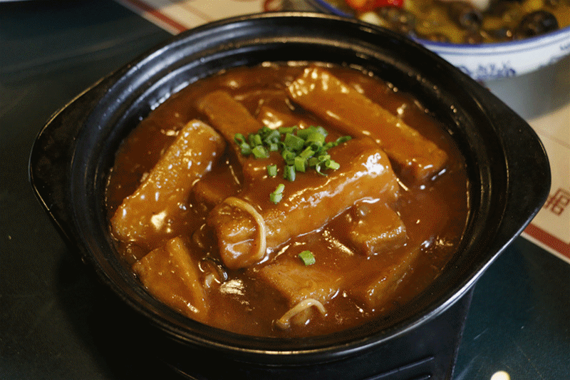 一上桌,鲍汁的清香扑鼻而来,浓稠的汤汁微微沸腾,美食君还没来得及拍照,就有吃货准备动手下筷子了。这道菜从有戏餐厅开业以来一直都是销量No.1,绝对是来店必点!