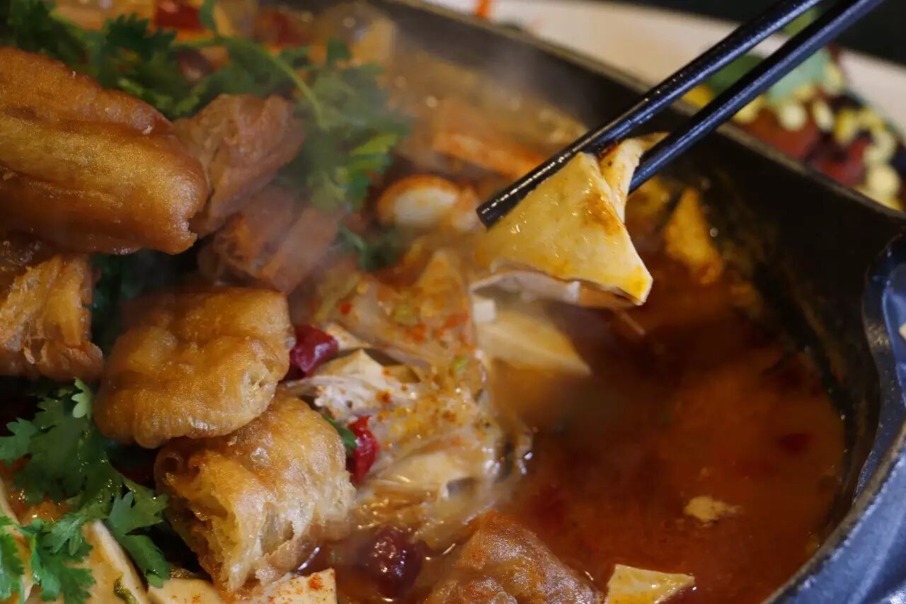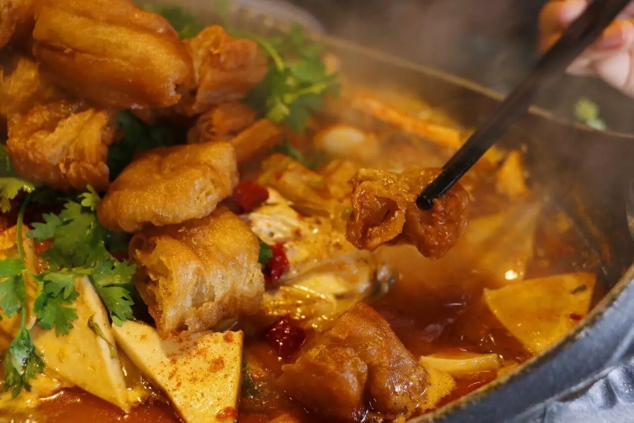 里头还有豆腐,不似嫩豆腐一般食之无味,反而有嚼劲。