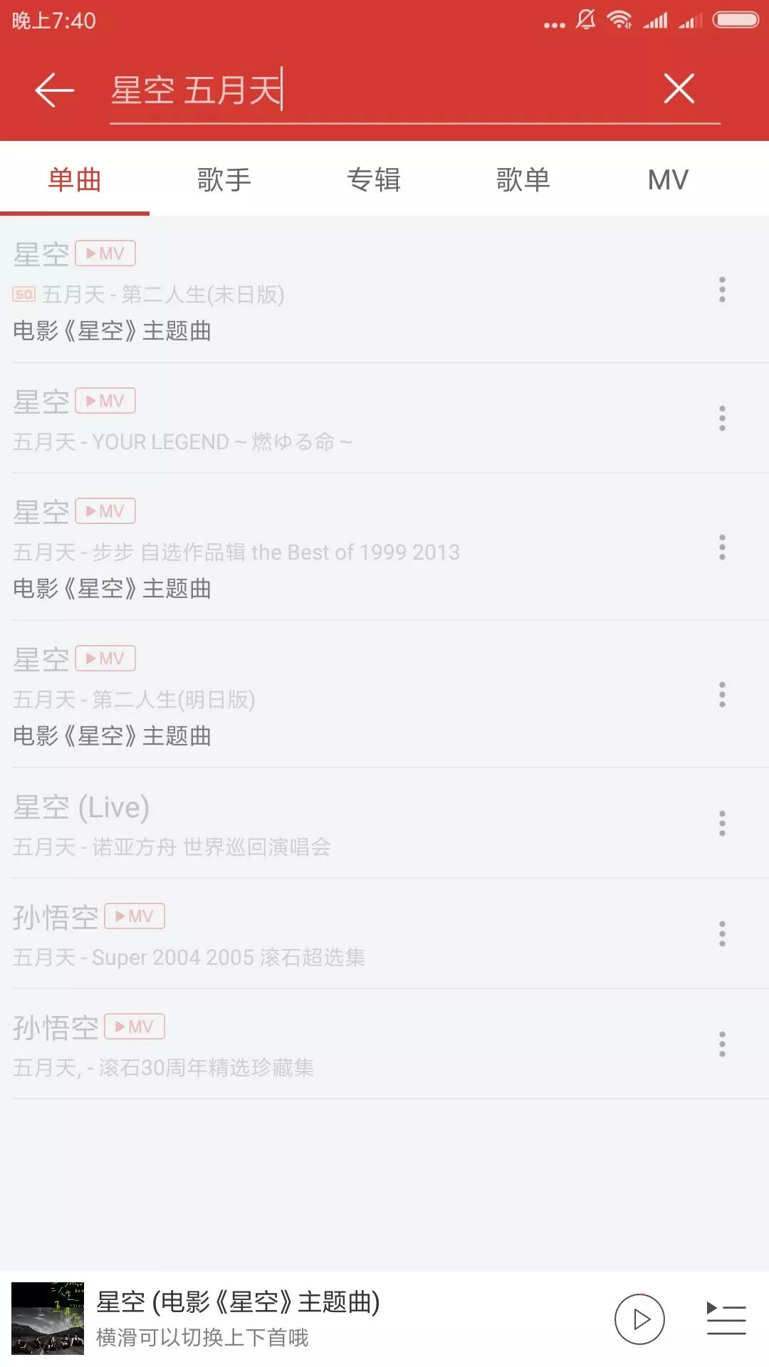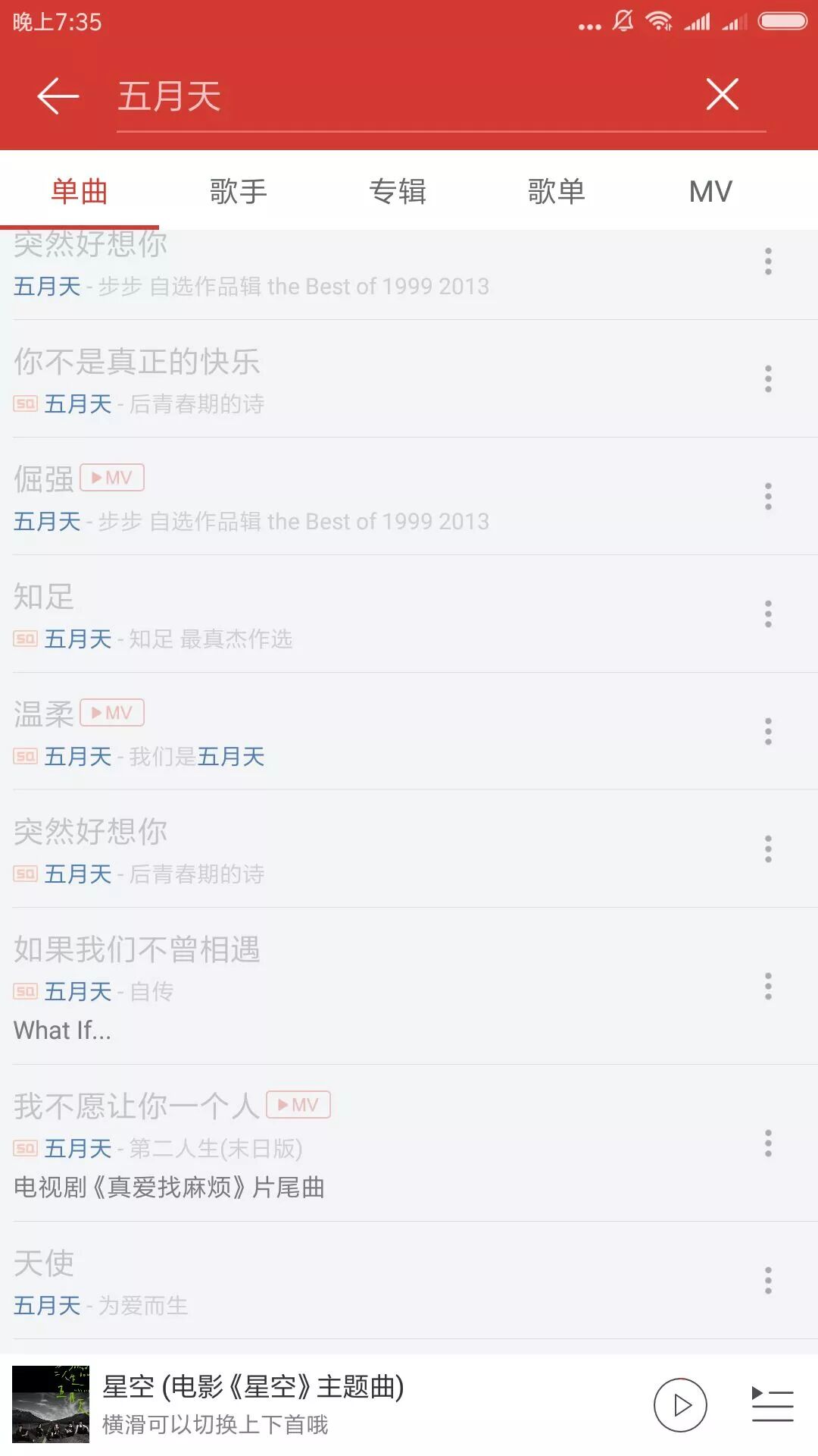 想听听五月天的《星空》,搜索出来的结果还是一片灰: