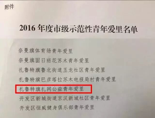 扎网公益团队是由来自各地各行各业公益志愿者自发组成的网络社会组织,是指导举办的中国“文传榜”提名创新团队,,是通辽市委员会命名的市级示范性青年爱里(青年之家),是扎鲁特旗慈善总会理事单位,是扎鲁特旗委扎网支部,并被通辽市文明办、通辽市志愿者联合会评为全市最佳志愿服务组织,扎网公益活动受到过、团内蒙古区委的点赞和鼓励。创办人张旸被评为全市优秀青年志愿者,入选中国文明网通辽好人榜,,挂职香山镇人民政府副镇长。