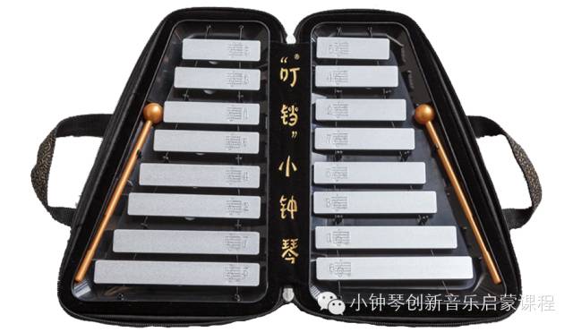 “小钟琴”是一种有音高的打击乐器,有16个音,左右排列,从下到上,以国际标准音准440赫兹为标准,小钟琴的音准达到正负5赫兹内;小钟琴每个音的回音要求一致。每个琴配有一对小锤,一本辅导书。具有音色优美,携带方便,简单易学,演奏方式丰富灵巧的特点。