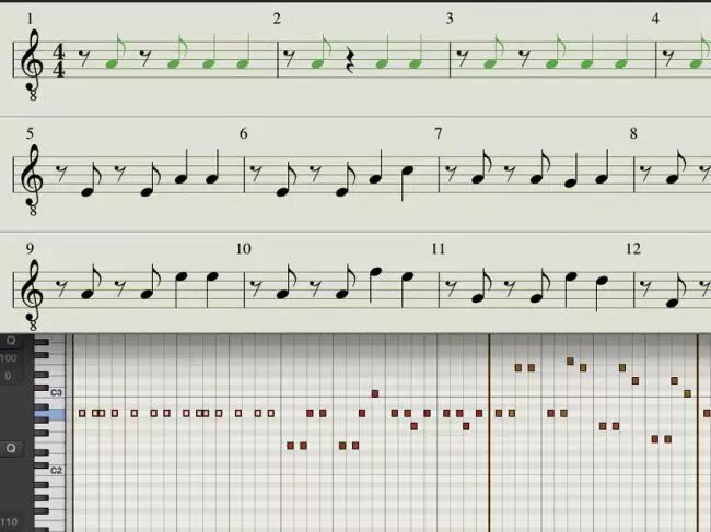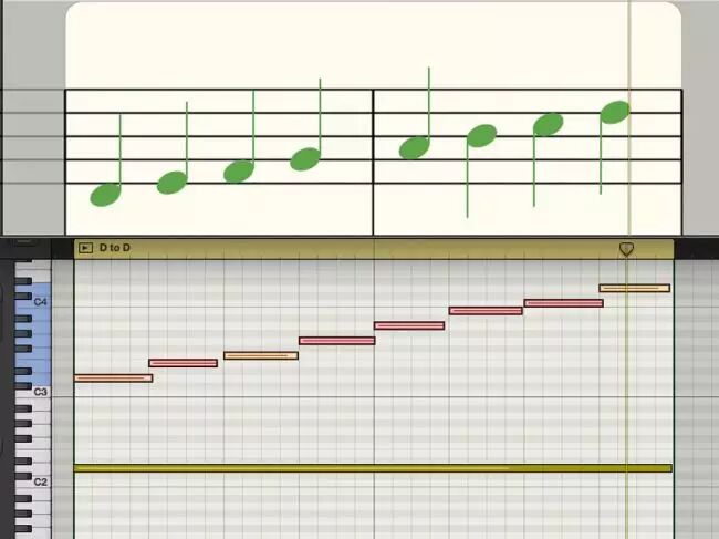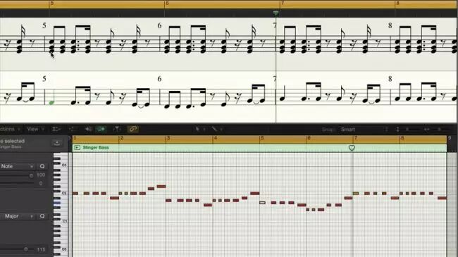 在写旋律的时候想要营造一种戏剧化效果或吸引听众的注意,我们可以试试拉长两个相邻音符间的音程跨度。最经典的就是1音和6音的使用了。这能将你带入一个全新的音域,带来更多的变化和创造力。