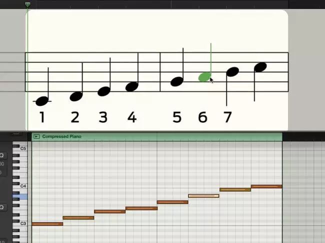 打开工作站,先弹奏C调大调音阶(C D E F G A B),然后从D开始弹奏,或者F开始。这种音阶用作极简音乐的loop会非常适用。