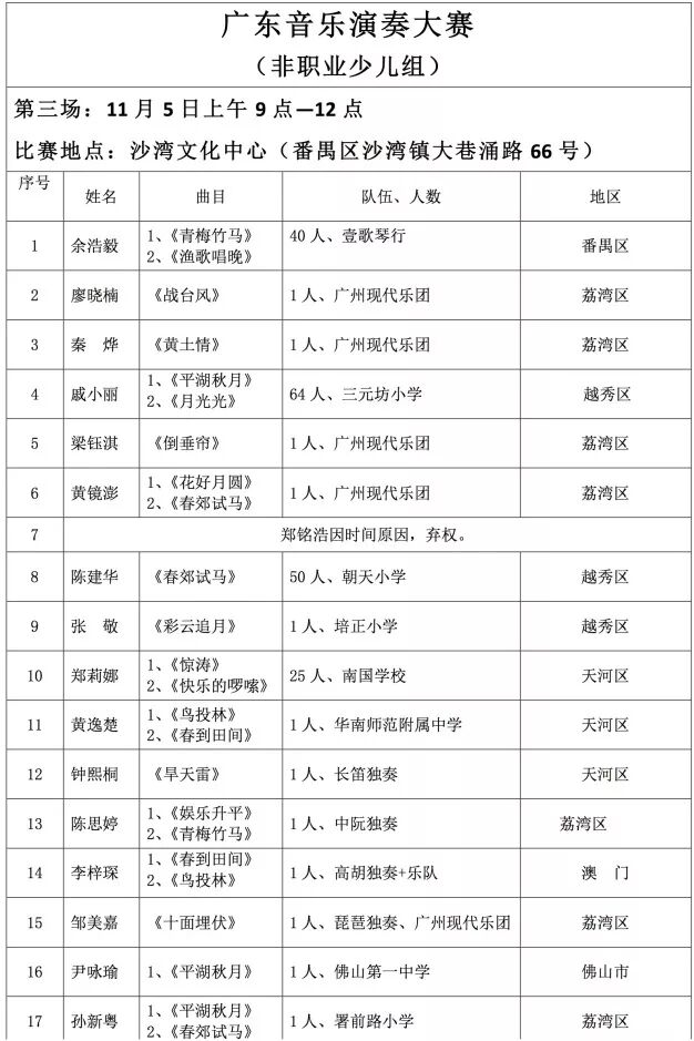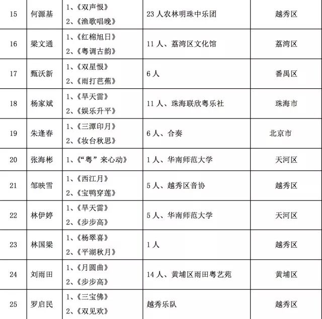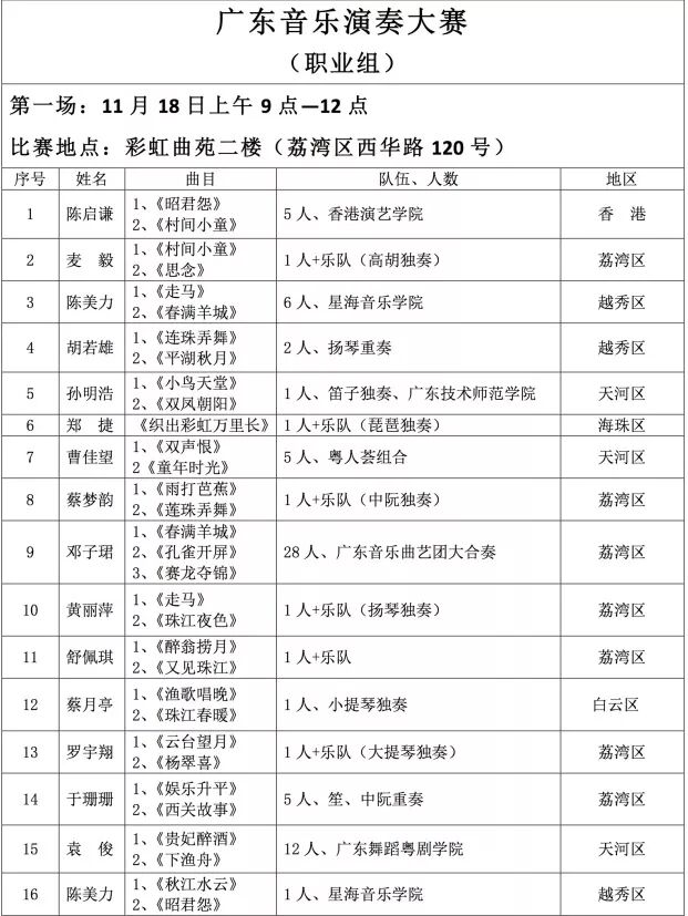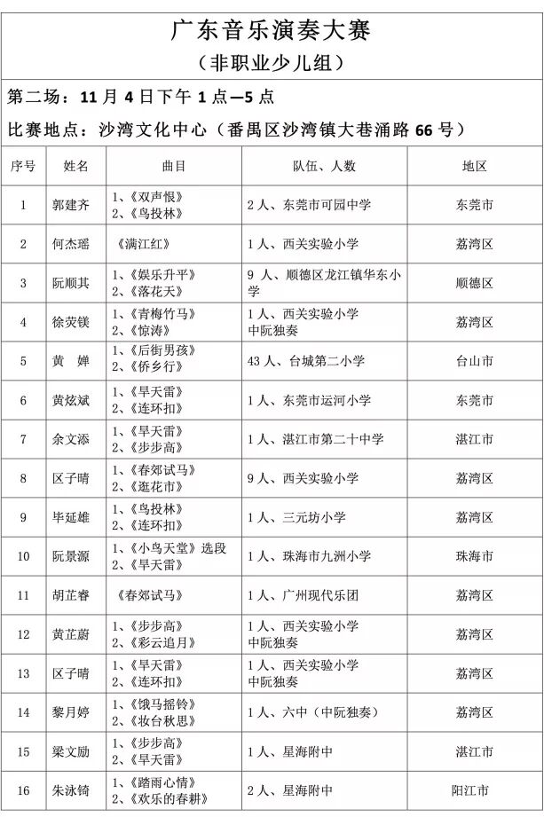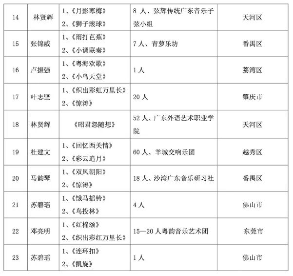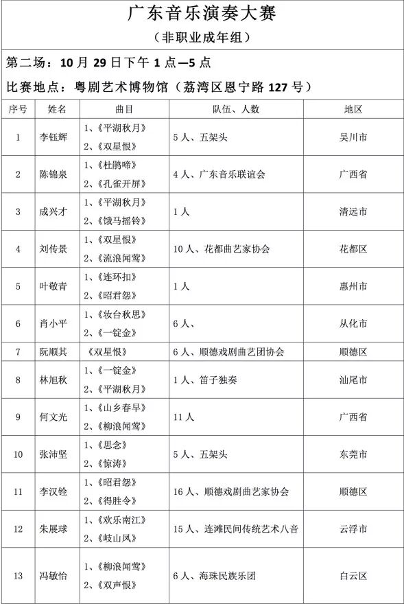 为在广大民众中进一步推广、普及广东音乐,繁荣广东音乐创作,促进广东音乐事业持续向前发展,传承和保护非物质文化遗产,弘扬优秀民族文化,现定于2017年1月至12月举行2017广东音乐演奏大赛,从报名开始大家踊跃参加,自本届大赛正式启动起至截止报名时间一共有161组报名,其中非职业组128组(非职业成年组:70组;非职业少年组58组);职业组:33组。