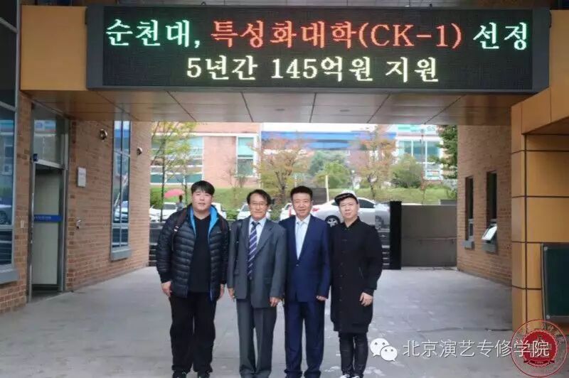 第九届Flower song中韩歌谣祭 2016年10月27日,北京演艺专修学院党支部书记、常务副院长陈强与流行音乐学院副院长包尔淦及北京演艺专修学院学生赴韩国参加第九届Flowersong中韩歌谣祭,此次行程为期9天。到达韩国后,常务副院长陈强首先与宋元變教授及韩国国立顺天大学总长朴真成会面,交流中韩文化并洽谈两校友好合作事宜。
