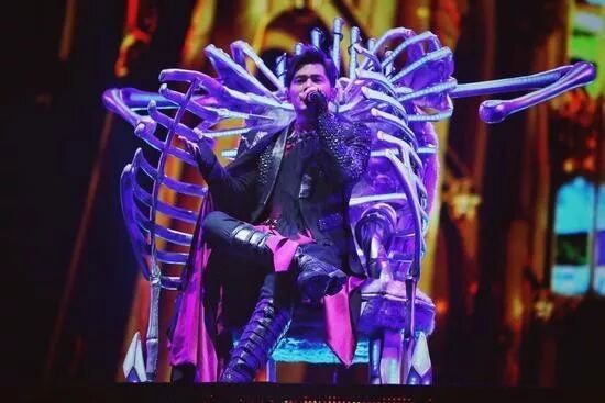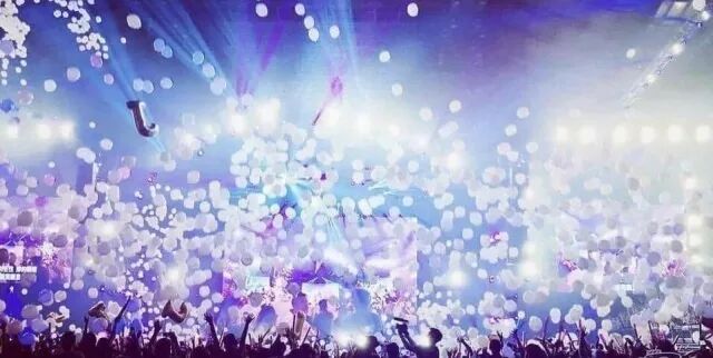以星空为底色,让歌迷沉浸其中,忘记距离感,在这个舞台上,星空般的射灯,利刃般的湛蓝光柱,暗喻式的布景,加上召唤式的歌声,让歌者与歌迷在情感上构建了一对一的情景