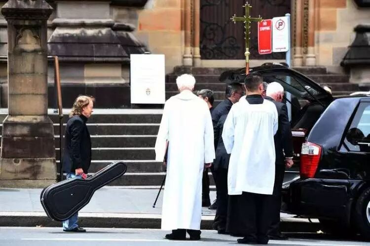 #3 乐队的核心、节奏吉他手马尔科姆·杨2017年11月18日因病去世,图为他弟弟、乐队主音吉他手安格斯·杨为他送别的照片。