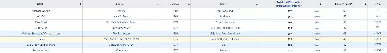 #1 AC/DC的专辑Back in Black是世界上第二畅销的专辑,至今已售出超过5000万张,仅次于迈克尔·杰克逊Thriller的6600万张。。