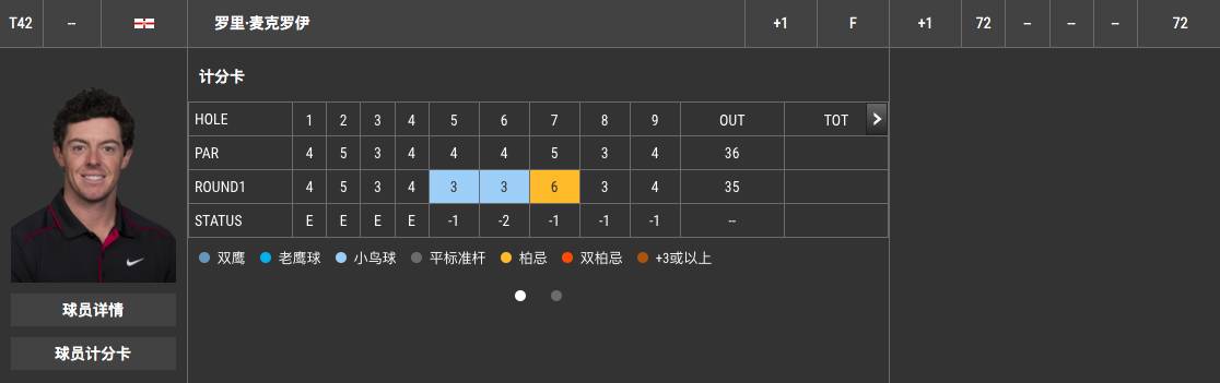 淘气任性的麦克罗伊,依然是处于低谷状态,推杆依然是致命伤,在第11洞的三杆洞既然出现了4推,哎!不说啦!