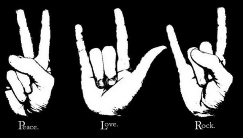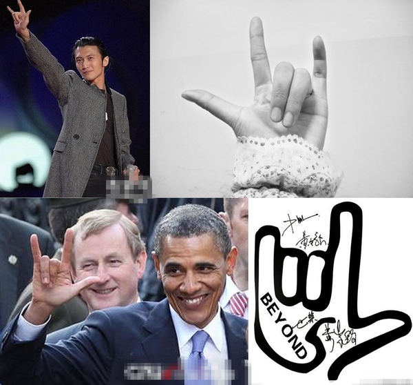 这个手势运用在摇滚乐中的历史甚至比”金属礼“更为久远。早在70年代摇滚乐呼喊着Love&Peace的口号之时就已经开始风靡,许多乐队的乐手都使用这一手势,德国的Rock AM Ring摇滚音乐节就是以此为标志,风靡华人乐坛的Beyond亦是这一手势的拥趸: