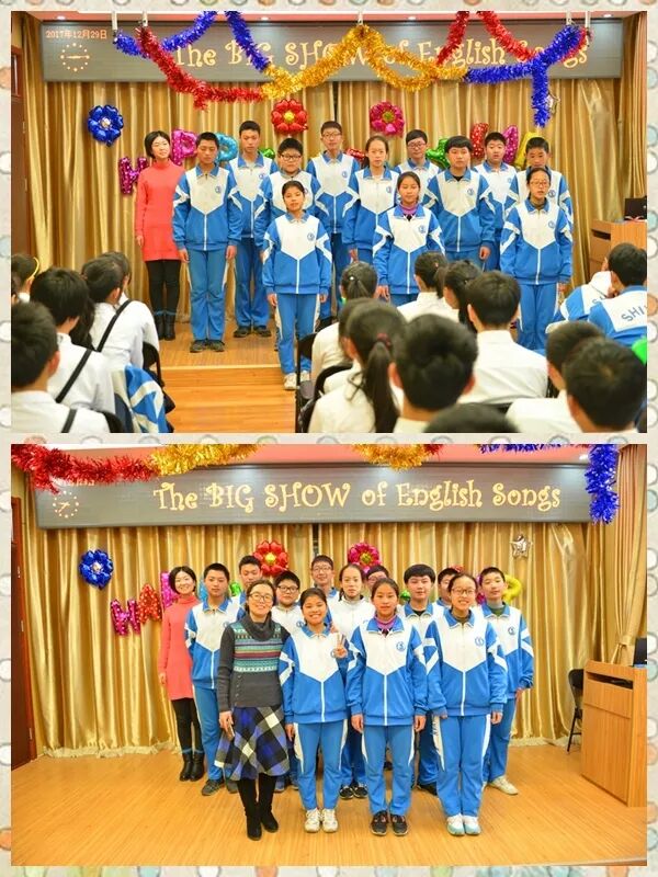 2017年12月29日,在这个辞旧迎新的特殊日子里,石景山区实验中学分校初一、初二年级举办了以《The Big Show Of English Songs》为题的英语歌曲展示的活动,活动形式为每班演唱2首英文歌曲。在活动前一个月,同学们在老师的带领下认真挑选、准备自己班级的歌曲,。